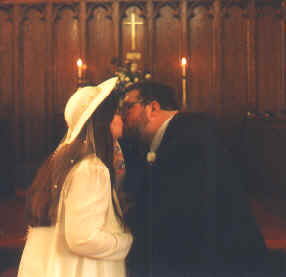 Beckie's father, Rev. Richard Hunter, escorts her down the aisle. |